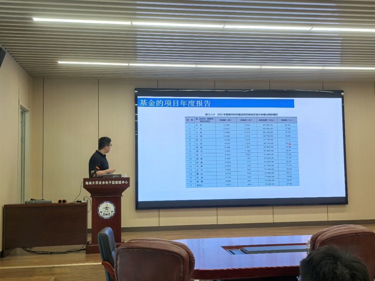 2025年10月25日上午,海南大学精密仪器高等研究中心(分析测试中心)(以下简称“中心”)邀请郑州大学国家级人才程少博教授做了主题为“国家自然科学基金申报经验及注意事项”的精彩报告。报告会现场气氛热烈,中心以及热带海洋工程材料及评价全国重点实验室等校内其他院系的众多科研人员、教师齐聚皮米电子显微镜中心122会议室,聆听这场关于基金申报的宝贵经验分享。