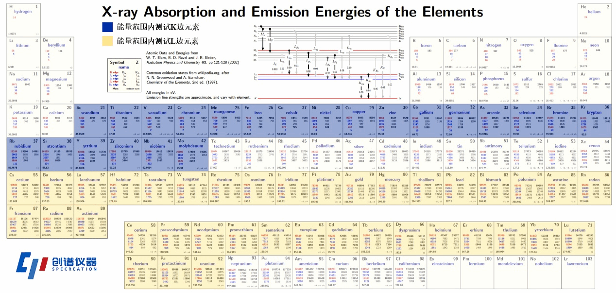 (一)测试元素范围:本仪器能量范围4.5 keV~22 keV,较为适用于3d元素(Ti、V、Cr、Mn、Fe、Co、Ni、Cu、Zn)测试,所有可测元素见下表。